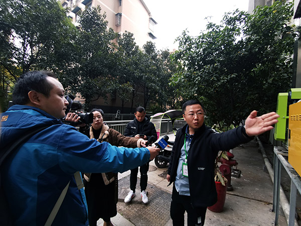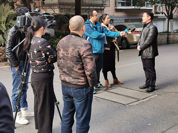 公司負責人陪同環保部門領導、株洲電視臺檢查報道小區油煙改造示范工程
